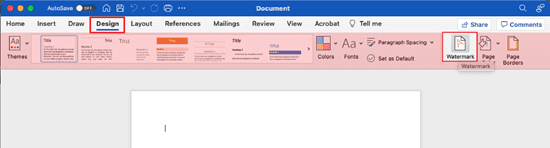 Then, select the “Design” tab followed by the “Watermark” icon.