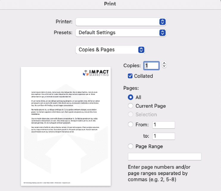 While having laser printed letterheads you can just print on with your home or office inkjet is ideal, in a pinch you can get by using Microsoft Word. If you need a letterhead, business card or logo design, contact the experts at Impact Marketing by calling 319-232-4332 or by visiting impactmt.com.