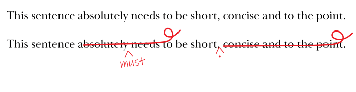 When writing copy, you absolutely need to make sure it is short, concise and to the point – everything this sentence isn’t. Compare the two sentences: