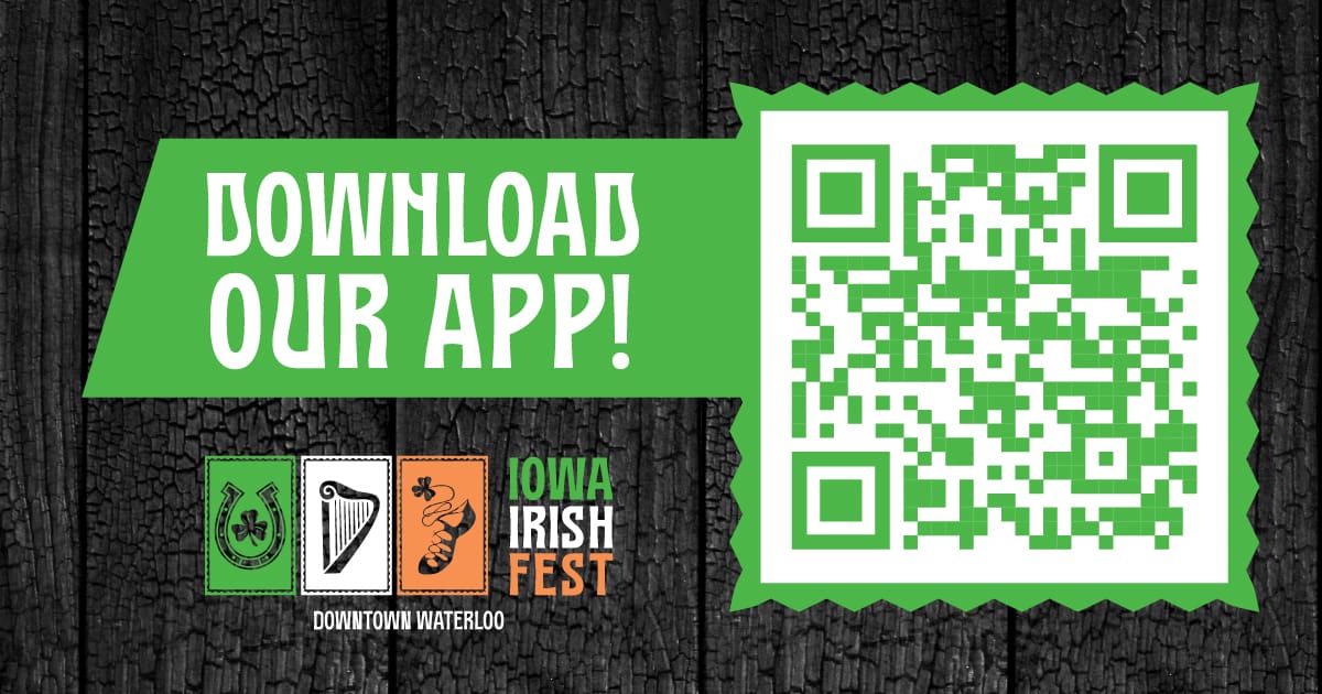 For Iowa Irish Fest, we use a QR code with a stylized border to match the design of the logo and other design elements used throughout the brand. The call to action is “Download Our App!” using the brand’s font which will bring the individual to the app store.
