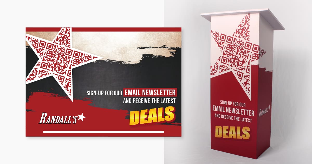 For Randall’s Meats and Catering, the QR code is incorporated into a star shape, drawing from their logo. The code remains scannable as long as it is fully visible and any repeated parts that are cut off do not affect its functionality. The design was inspired by Hy-Vee, which uses a repeated version of their code in the form of an “H”.